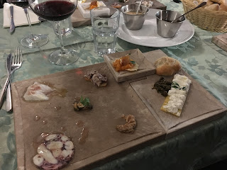 After Berat we headed to Durres for a walk and some lunch. I couldn't see it, but the boot heel of Italy is just across the Adriatic Sea from Albania. There has been a lot of Italian influence in the country over the years, and a lot of Albanians speak Italian. I even remember eating at an Albanian pizza restaurant when I lived in NYC, not realizing why Albanians made pizza. Walking along the waterfront, we found a restaurant where we got fresh grilled fish, shrimp, wine, soup, sides and dessert for 10 euros each. I could get used to that.